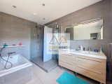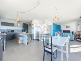 Elle est composée de 4 grandes chambres dont une suite parentale avec salle d’eau et dressing, une belle pièce de vie lumineuse avec poêle à granulés, cuisine équipée ouverte sur le séjour avec accès direct au niveau du jardin et de la piscine.